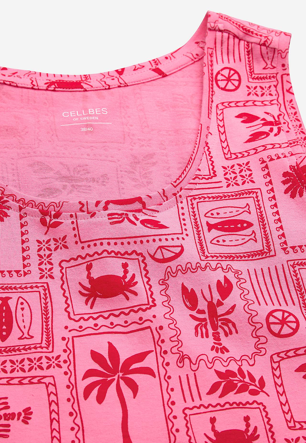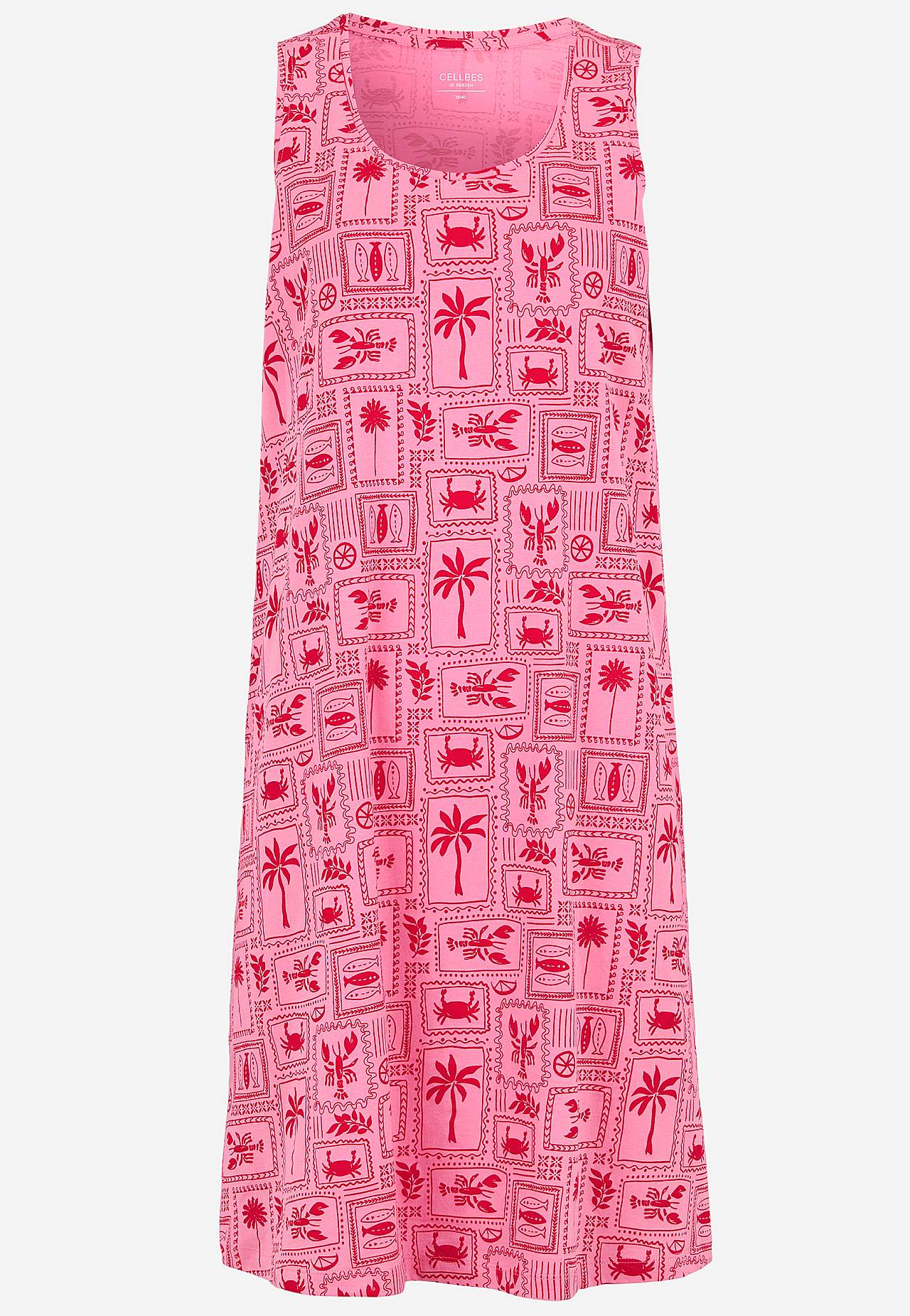 Kort, mønstret nattkjole i myk økologisk bomull. Casual passform. Rundhalset. Ermløs modell. Rett fald med splitt i sidene. Lengden følger størrelsen, ca. 94-101 cm fra skulderen bak.