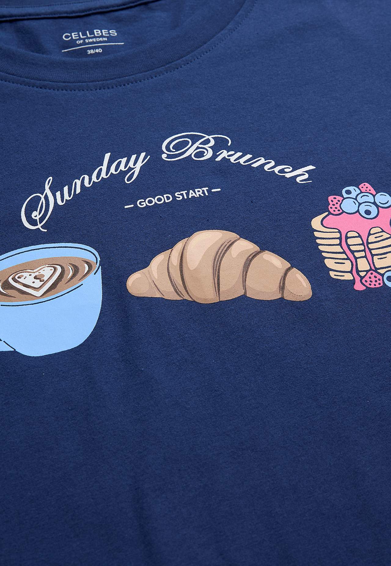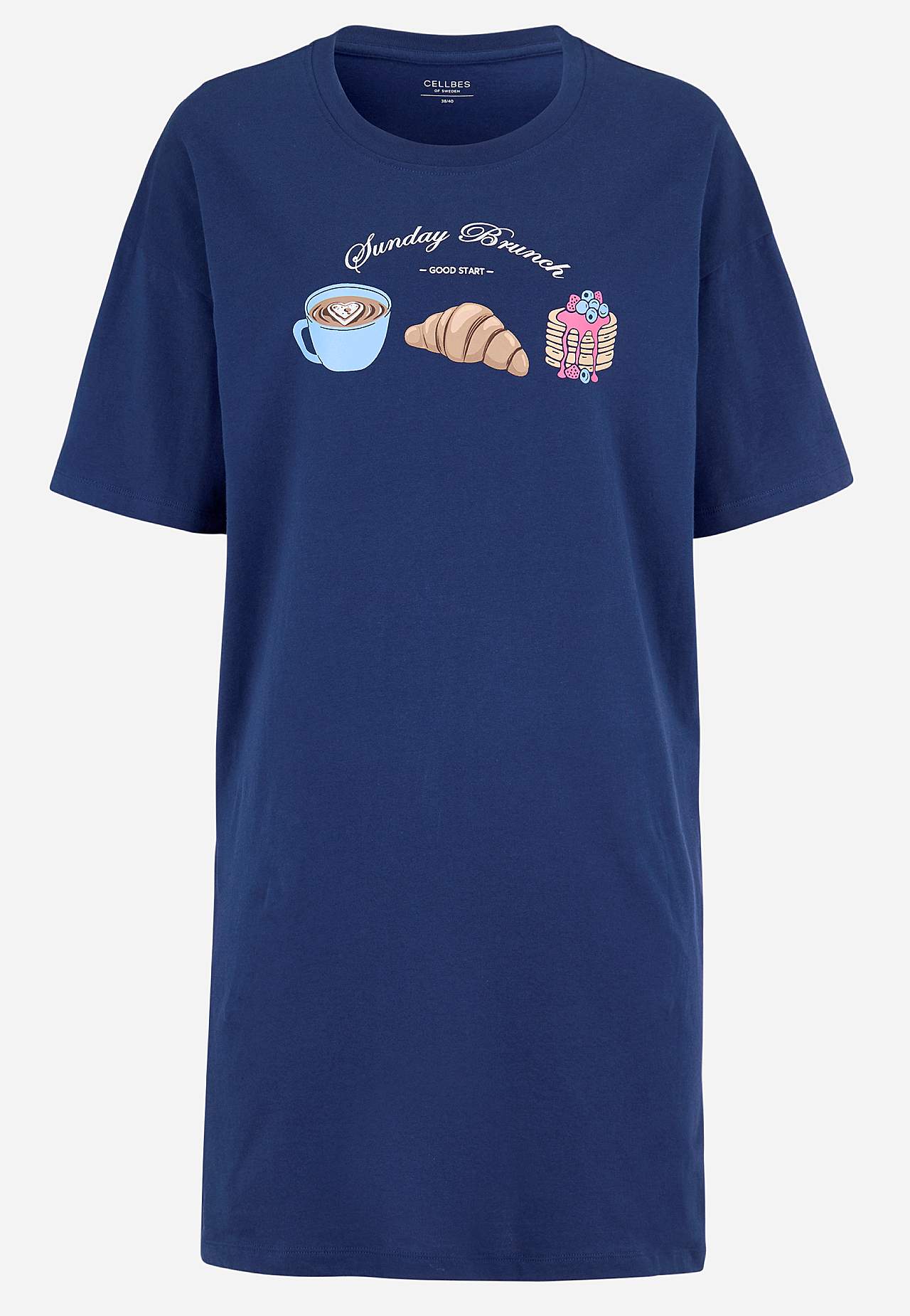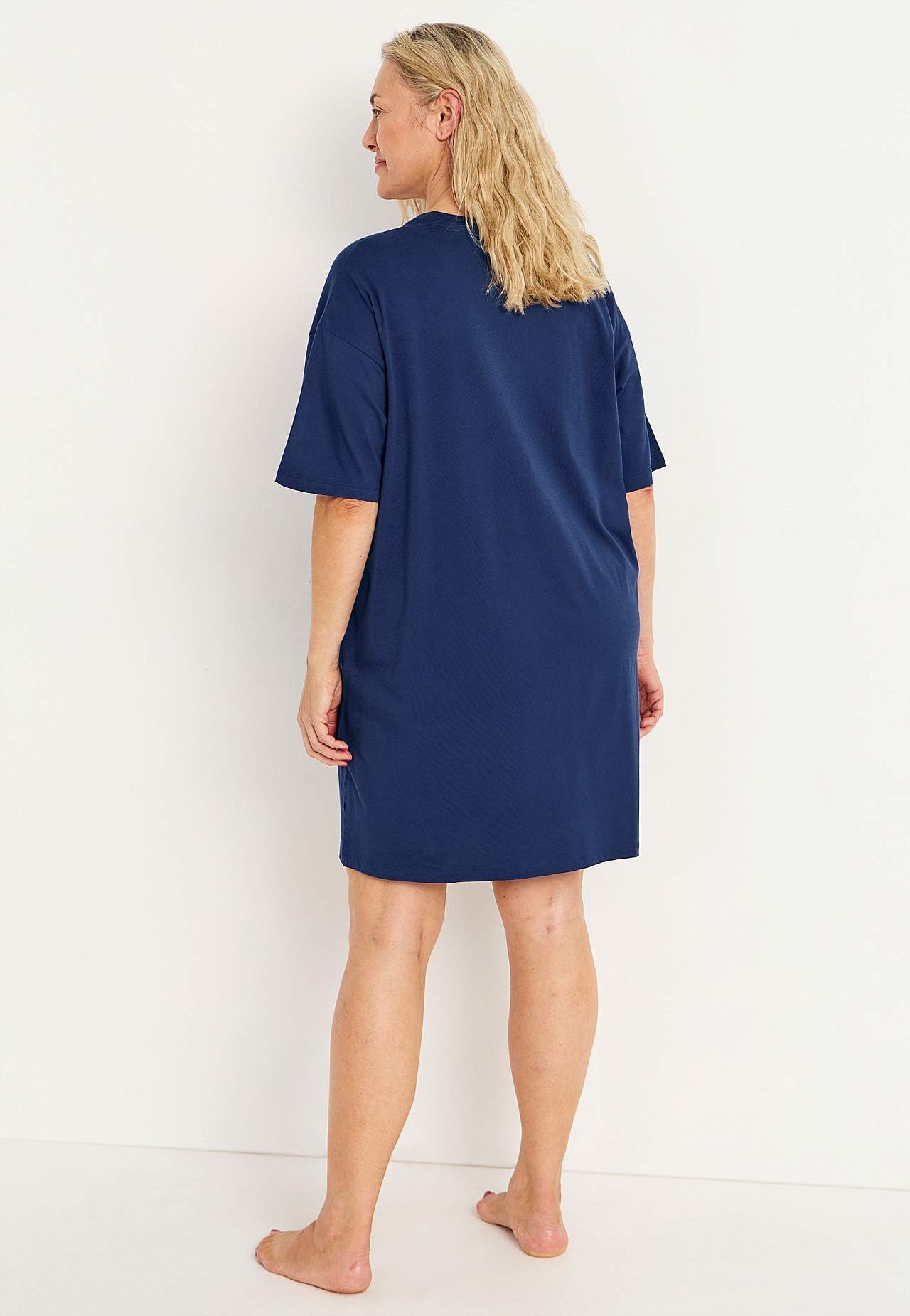 Kort nattkjole i myk organisk bomull. Trykk foran. Casual, rett passform. Rund hals. Korte ermer med utringet skulder. Rett fald med splitt i sidene. Lengden følger størrelsen, ca. 88-95 cm fra skulderen bak.