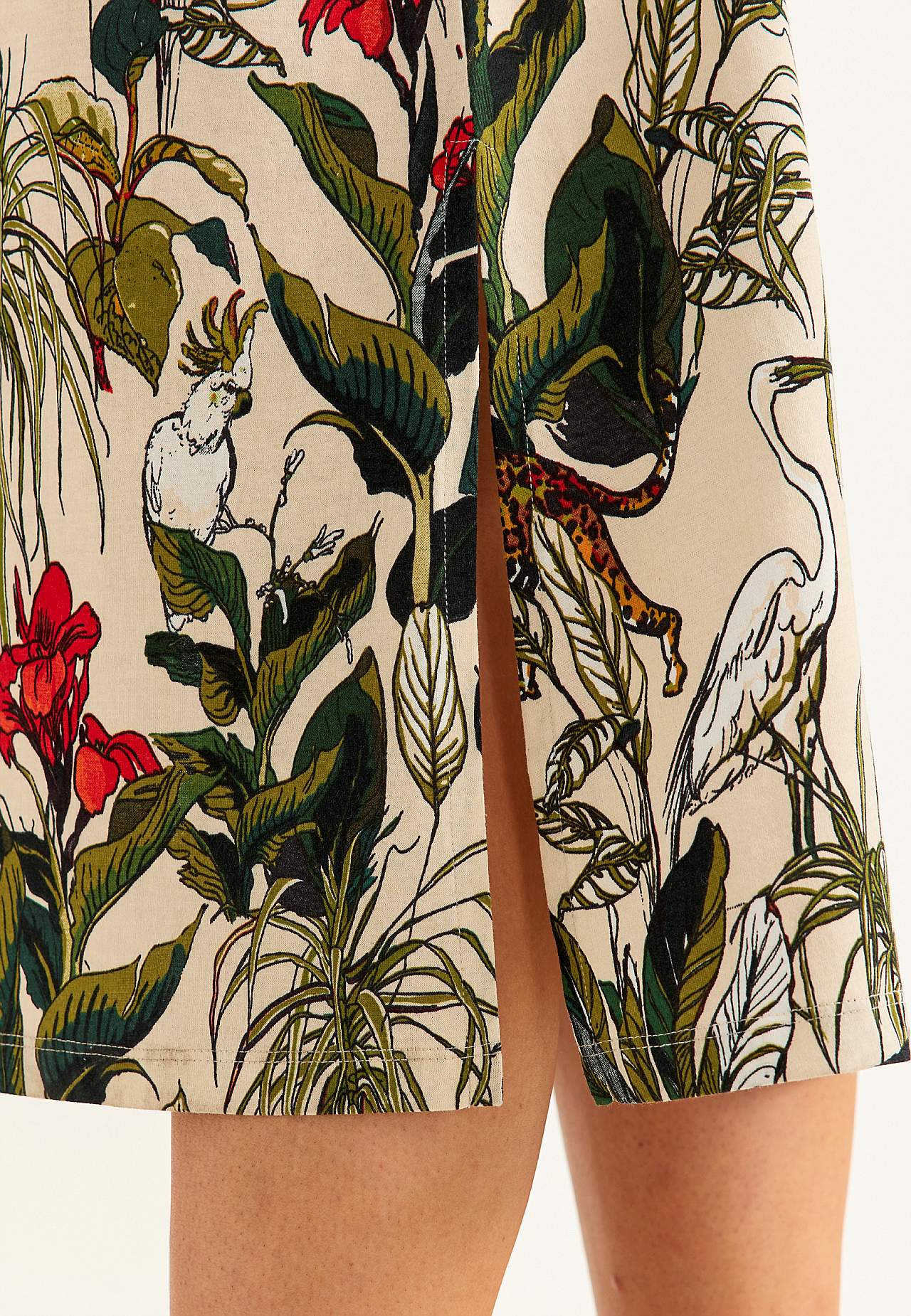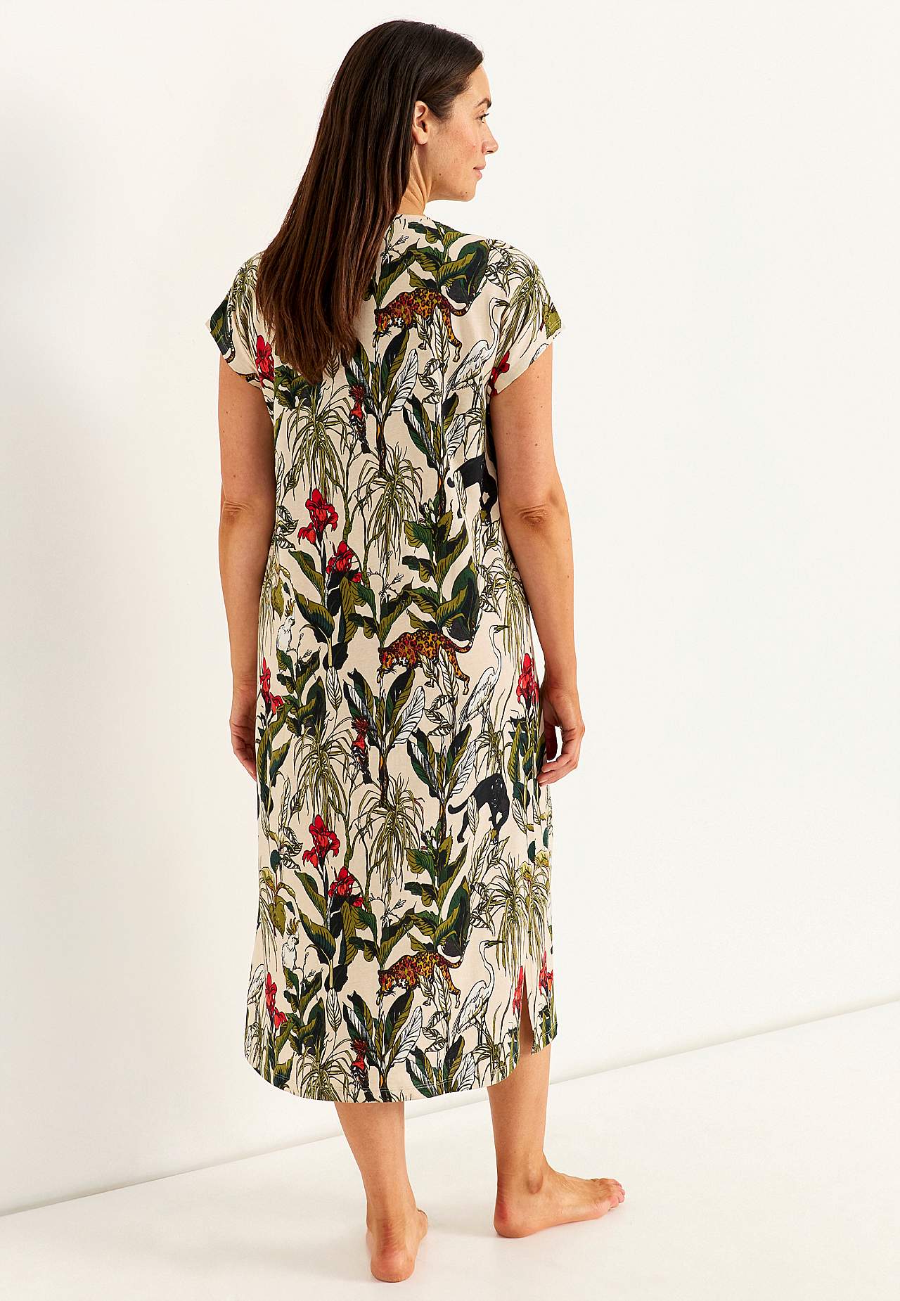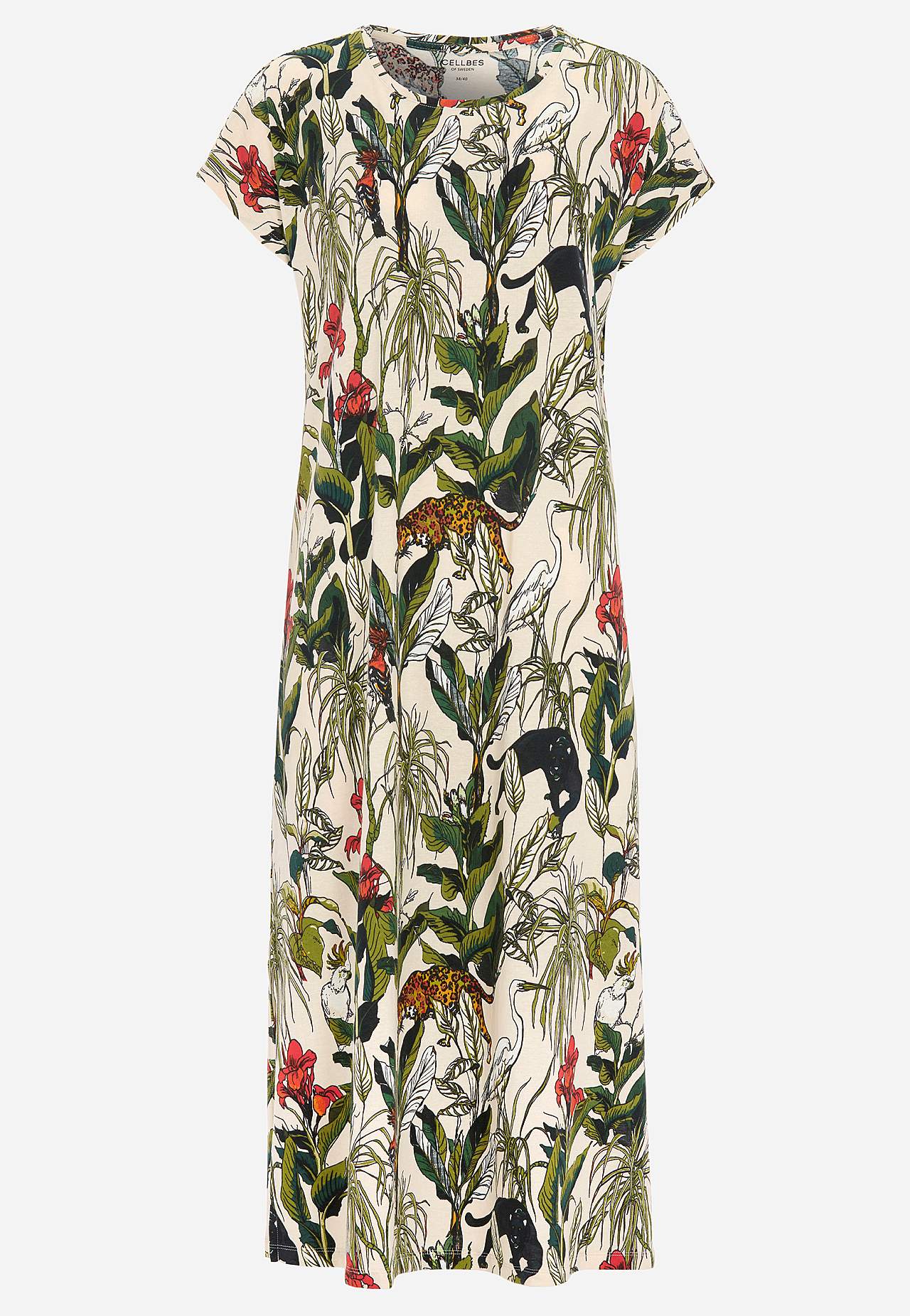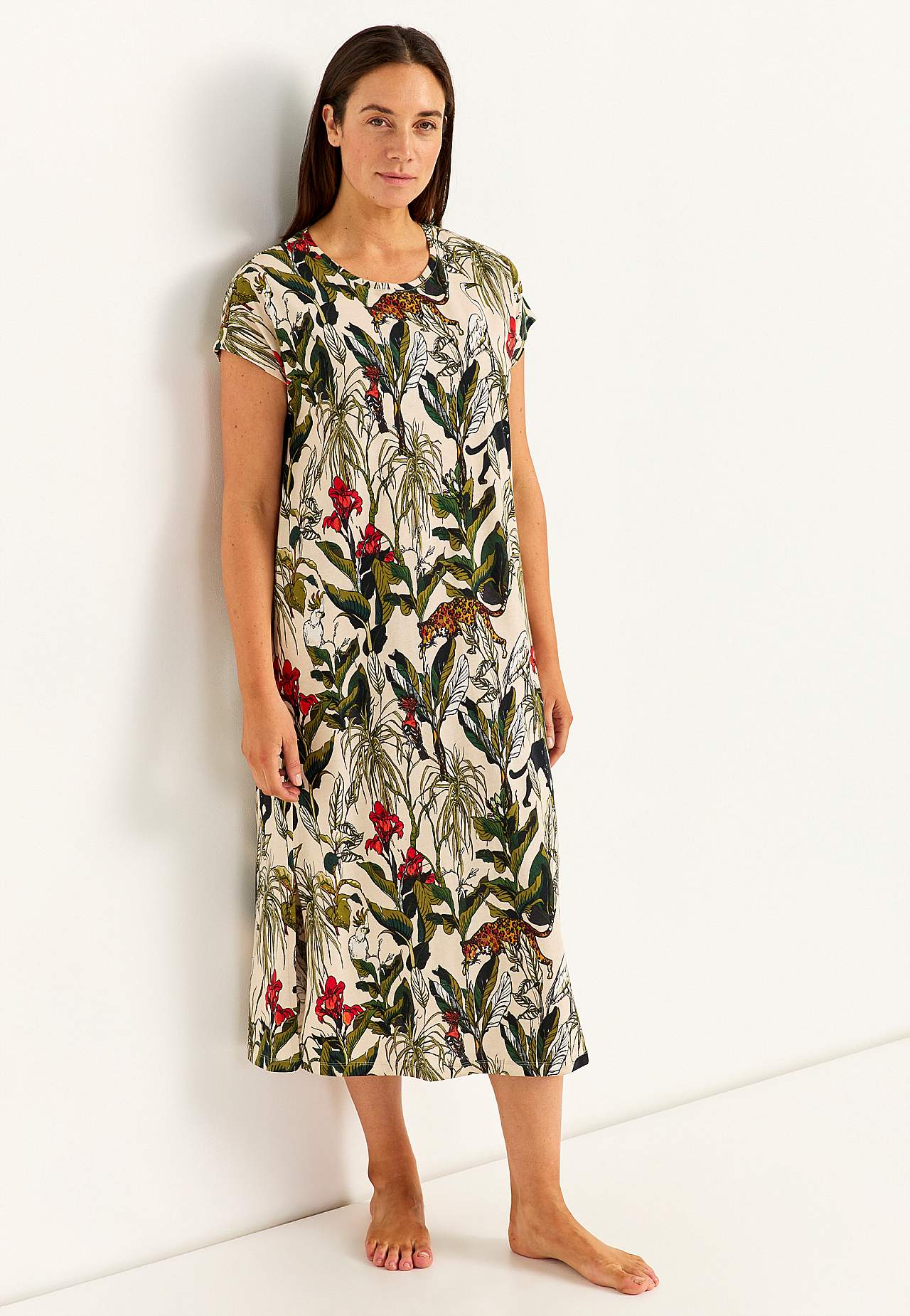Myk bomullstrikot. Rund hals. Korte korte ermer. Rett fald med splitt i sidene. Lengde fra skulder ca. 124 cm i alle størrelser.
