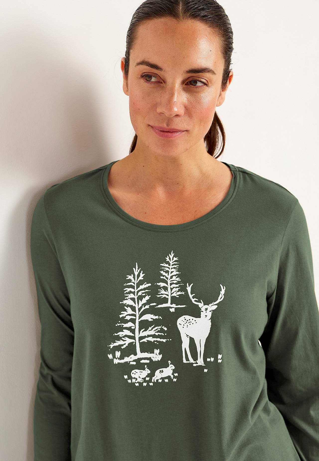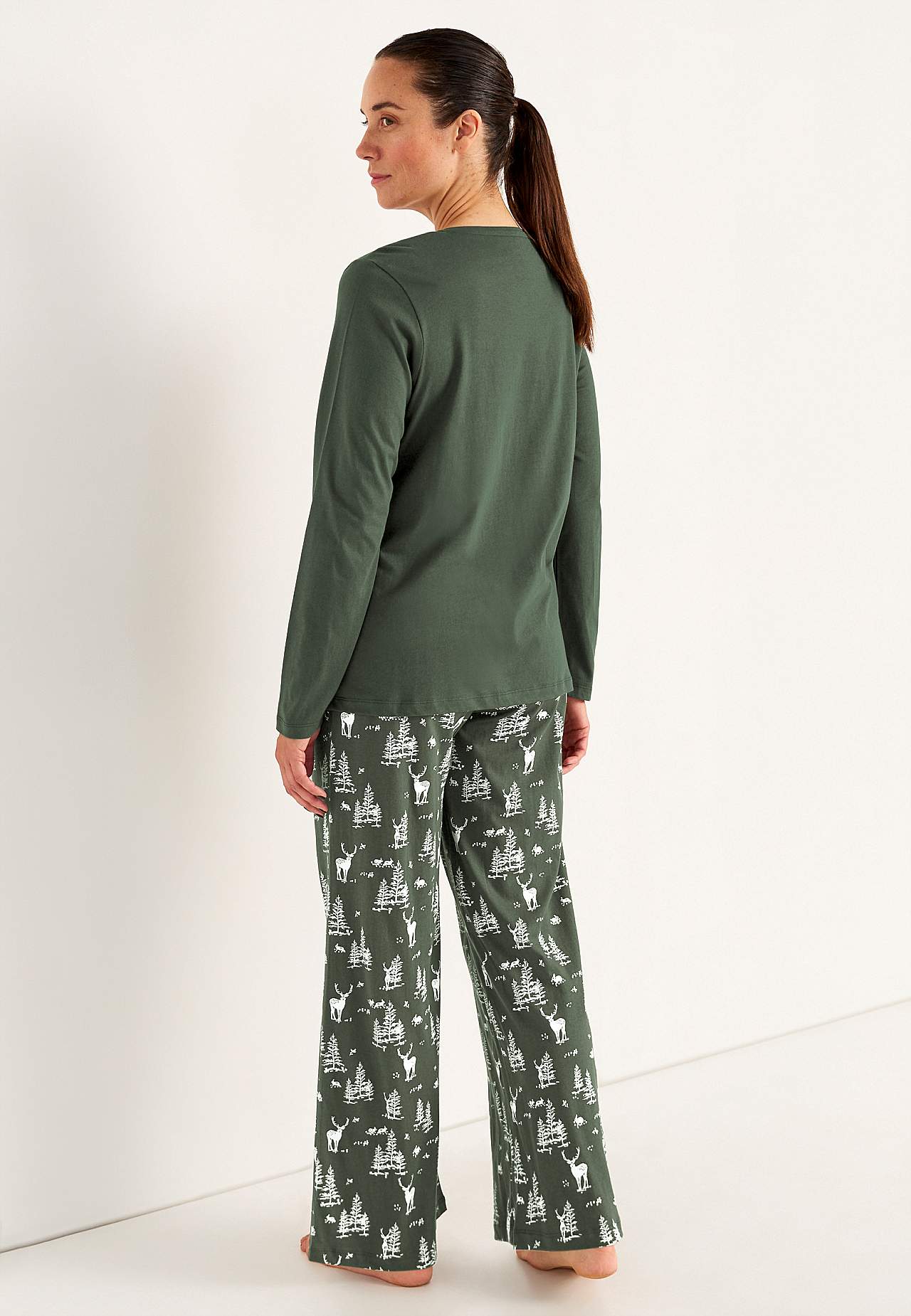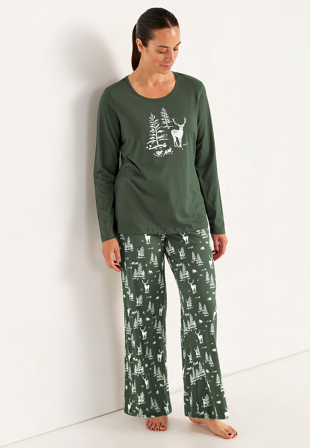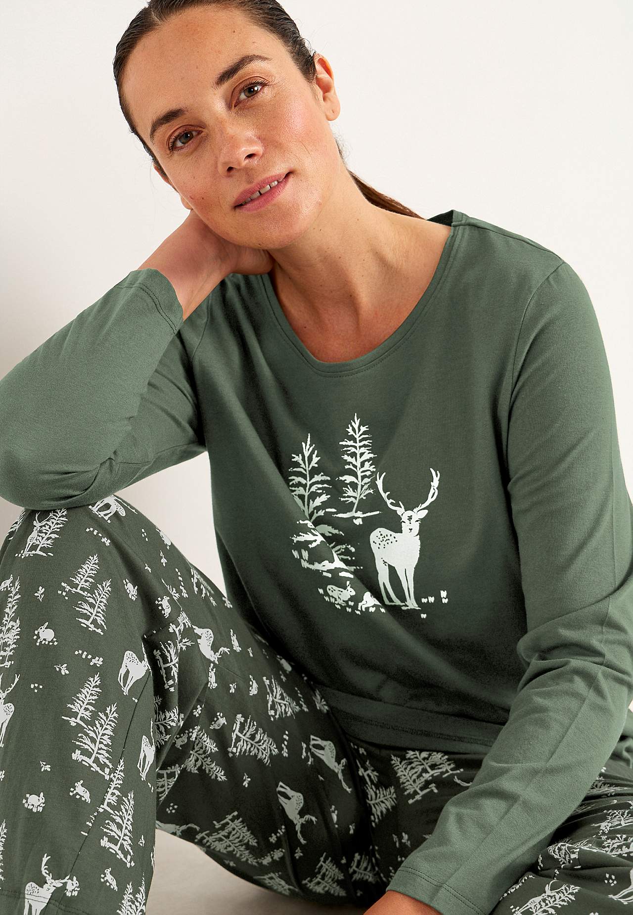 Topp med lange ermer. Lange bukser. Øvre del: Pyjamastopp med rund hals. Lengden følger størrelsen, ca. 67-79 cm fra skulderen.
