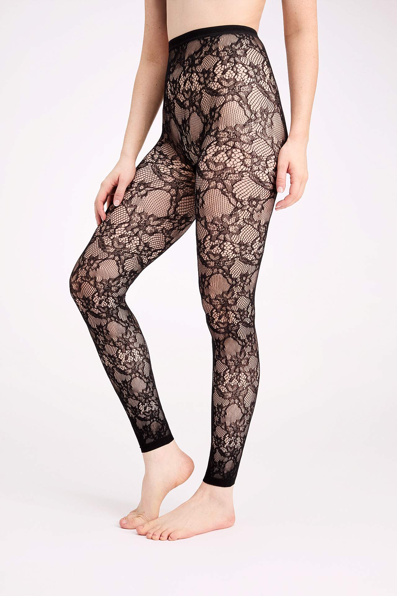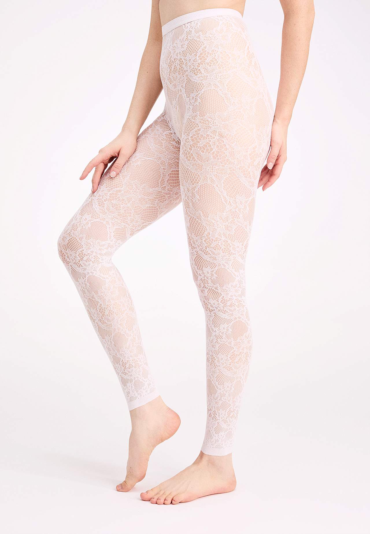 Gjennomsiktig, stretchy leggings med blonde med elegant mønster. Tilpasset passform. Midje i normalhøyde med komfortabel, tynn elastisk kant. Fôret skritt. Litt matt finish. Rette benender. 60 denier.