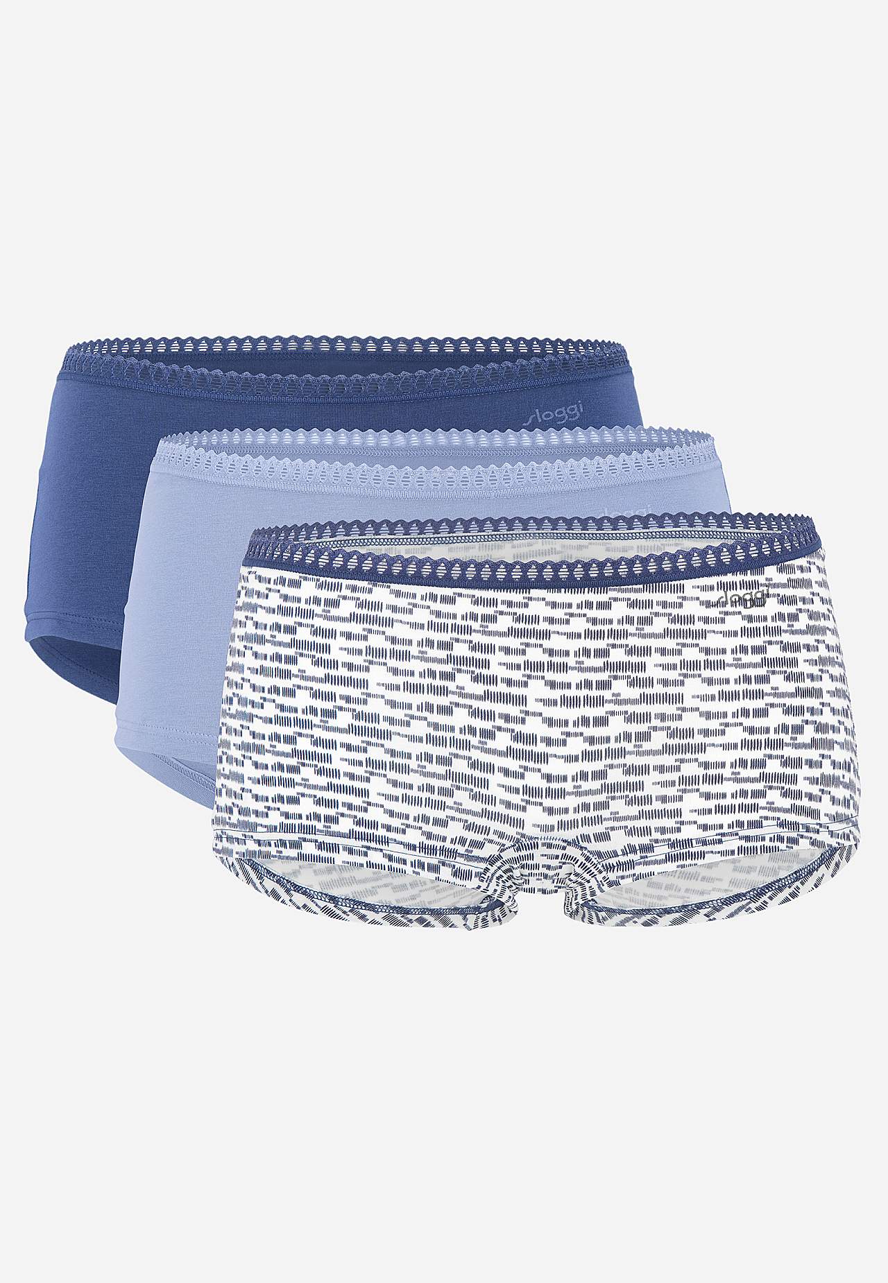 Supermyk, stretchy dametruser i bomull. Selges i 3-pakning. Myke sømmer. Normal midje. Stretchy blondekant. Unikt mønster med fargede farger. Myk bomull lar huden puste og fleksibel elastan forsikrer at plagget holder formen hele dagen.
