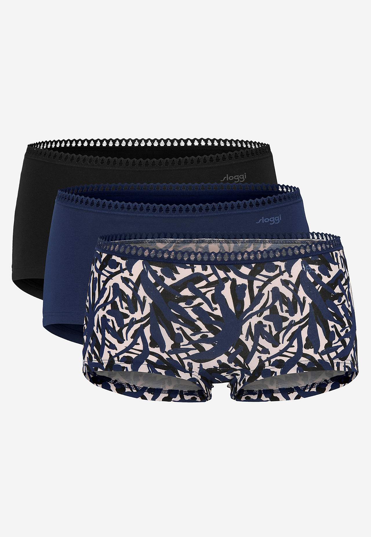 Supermyk, stretchy dametruser i bomull. Selges i 3-pakning. Myke sømmer. Normal midje. Stretchy blondekant. Unikt mønster med fargede farger. Myk bomull lar huden puste og fleksibel elastan forsikrer at plagget holder formen hele dagen.