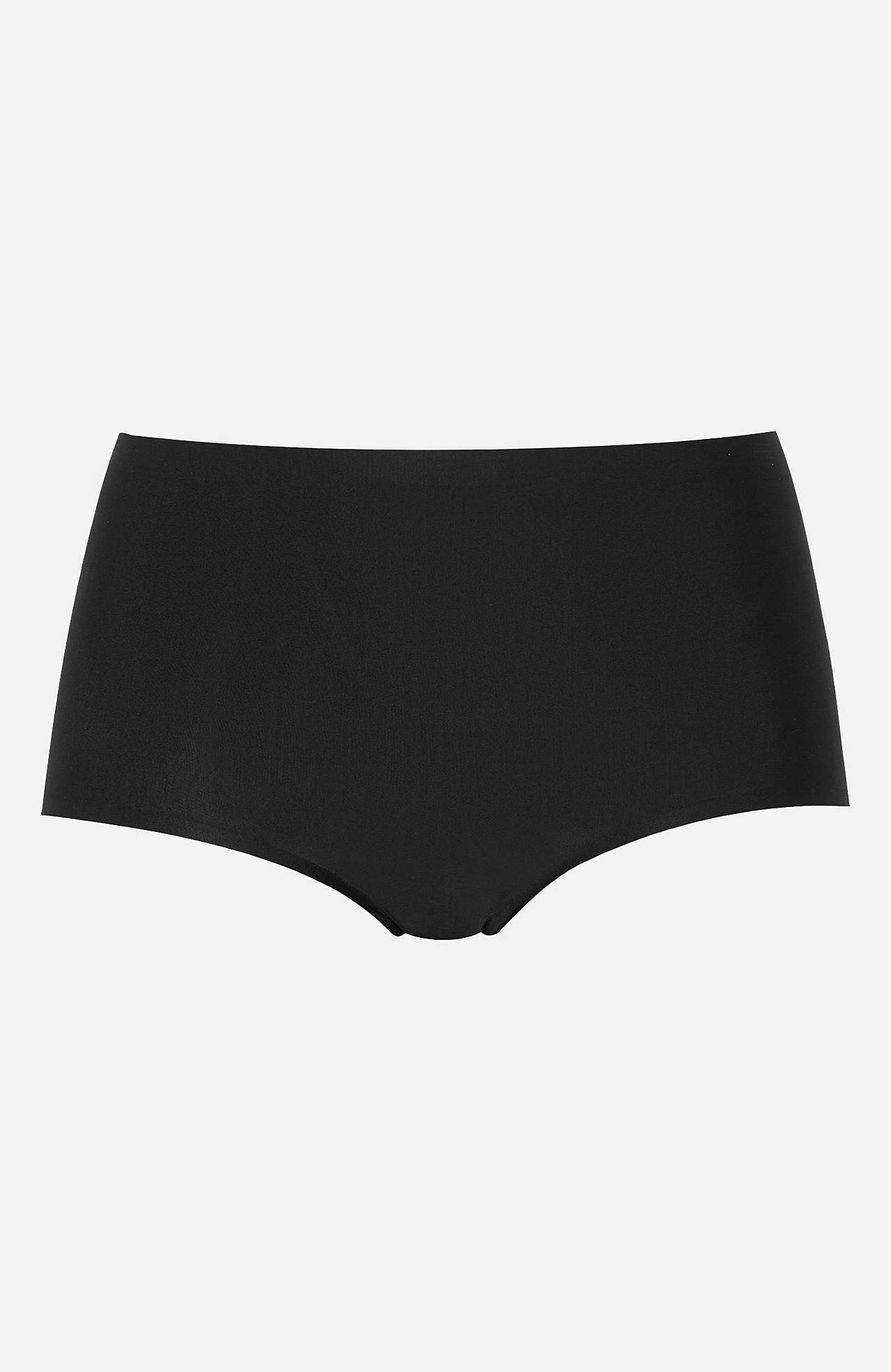 Velsittende dametruser med komfortabel høy midje. Kantene er laserskåret for å være usynlige under tettsittende klær. Myk, fleksibel mikrofiberkvalitet. Flatterende passform. Midjehøy modell. Lav benåpning. Forsterkede, laserkuttede kanter i midjen og benåpningene. Bomullsfôret skritt.