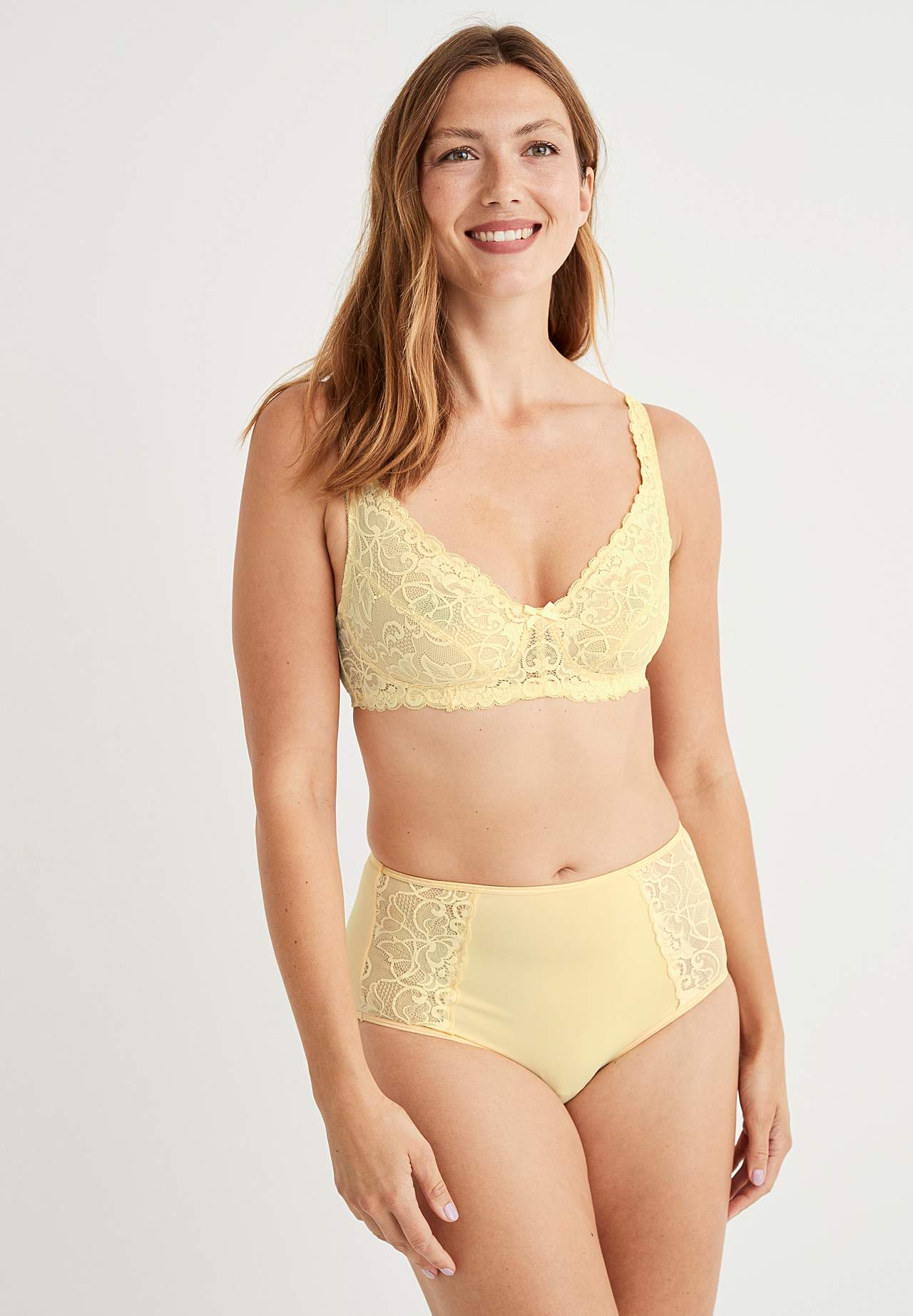 Høy modell i god mikrofiber og myk blonde. Bomullsforet skritt.